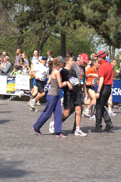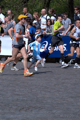Dès la ligne de départ, franchie, je déclenche mon chrono et je me mets à courir. Je pars doucement afin de m'assurer qu'Alexis est bien installé. Et de grandes salves d'applaudissements nous encouragent, je ne le vois pas mais je sais qu'Alexis a un large sourire !